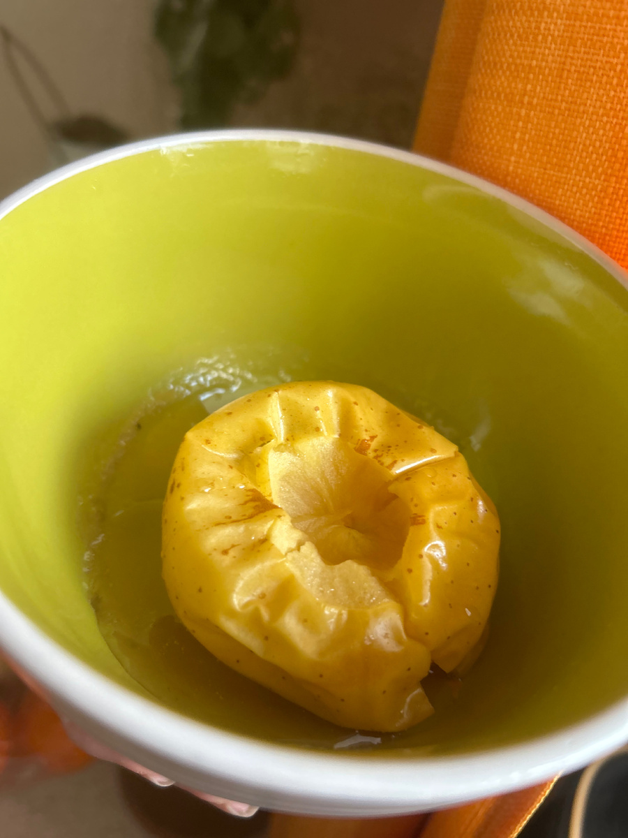 Полезное, вкусное лакомство, которое понравится и взрослым и детям 🤩 а самое главное - витамины почти все остаются и клетчатка, так необходимая нашему кишечнику, остается на 💯! Для приготовления одной порции нам понадобятся: Ингредиенты: 1. Яблоко - 1 шт. 2. Мед - 0,5 чайная ложка 3. Корица молотая - по вкусу А для приготовления большего количества умножайте ингредиенты на количество персон☺️ Инструменты: Приготовление: Подготовьте указанные ингредиенты. По желанию мёд можно заменить сахарным песком (вдруг у кого аллергия) Яблоки промойте в воде, вырежьте из фруктов сердцевину ножом. Старайтесь не проковырять дно яблок, чтобы из них при запекании не вытек мед. Выложите в углубления мёд и присыпьте молотой корицей. Поставьте в микроволновку на максимальной мощности на 5 минут, но сразу не вынимайте, после выключения дайте постоять минуту -другую. Осторожно доставайте, горячо! Подайте к столу с теплым ароматным чаем и мороженым. Приятного аппетита!