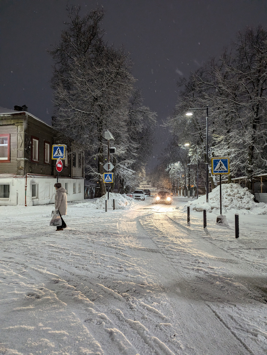 Всем доброго дня! Пока мои друзья по путешествию нежатся в своих кроватках, попытаюсь немного написать о вечернем городе. 31 декабря к вечеру пошёл снег и город постепенно засыпало, засыпало, засыпало... Народ в большей массе резал оливье и укрывал селедки шубами. Редкие машины уступали нам дороги, город готовился к встрече нового года . На почти пешеходной улице Карла Маркса включили подсветку Елок, готовых к встрече Н.Г. в Арзамасе много - на Соборной площади, в парке Горького, на пересечении улиц Карла Маркса и Горького. Да и еще много где, просто мне столько не надо, мне и этого количества хватит для праздника. Городничий зорко смотрит за порядком Рядом с городничим "Шахматный клуб", где можно и в шахматы поиграть, и устроить фуршетный стол, если в праздничную ночь не все допито под ёлкой Дома здесь ну очень в хорошем состоянии, я бы сказала, нарядные рядом с ними стоят таблички с QR-кодами и рассказами о городских традициях и достопримечательностях А как вам "Аптекарски