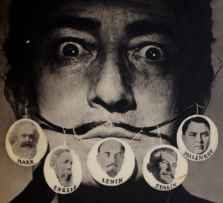 Дали был уверен, что его усы станут знаменитыми. Он запишет: «Моя стратегия уже принесла мне бесчисленные сочинения, посвященные моей персоне, а весь секрет в том, что мои антиницшеанские усы, словно башни Бургосского собора, всегда обращены в небо». Именно на своих обращенных в небо усах Дали разместит галерею портретов Маркса, Энгельса, Ленина, Сталина и Маленкова. «Волосяная история марксизма» была запечатлена знаменитым фотографом Филиппом Халсманом и вошла в книгу «Усы Дали». Дали планировал еще и шестой кружок, который до поры до времени должен был оставаться пустым, но предназначался впоследствии для Хрущева.