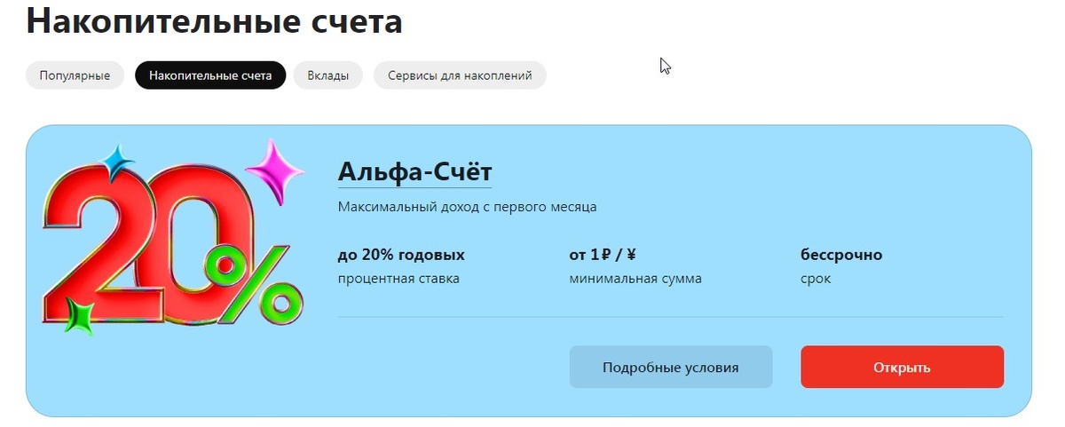 Условия по Альфу-Счёту: