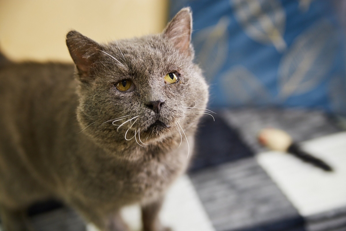 Бим - взрослый кот британец некогда красивого, а теперь слегка потрепанного жизнью дымчатого окраса. У Бима полностью сформировавшийся характер и свои устойчивые взгляды на этот мир. На ласку отвечает лаской, на грубое нарушение личного пространства может ответить когтистой лапой. А в целом он очень адекватный кот, ненавязчивый и спокойный. Главное, чтобы в тарелке всегда была еда, он вечно голодный кот. За еду готов бить любого, кто приближается к его миске. Не любит Бим любые врачебные манипуляции, считает их насилием над личностью и бьется за свободу яростно и жёстко. В анамнезе у него кошачий вирус иммунодефицита, поэтому Бим может жить только единственным питомцем в семье. Впрочем, он и один заменит вам несколько котов и пару собак точно. Хороший серьезный кот для серьезных людей, с которым вы будете уважать друг друга и разговаривать на разные темы долгими зимними вечерами, не забывая пополнять Бимову мисочку с кормом. Как же попал этот шикарный старичок в приют? Кот по кличке Би