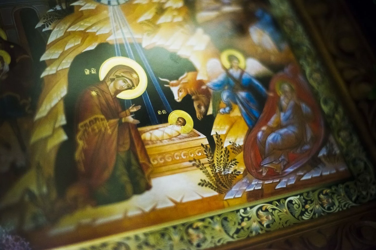 Господь Бог наш и Спаситель Иисус Христос как Человек появился на свет во время правления императора Августа Октавия. Кесарь в те дни повелел сделать по всей империи, в которую в качестве провинции тогда входила Палестина, всеобщую перепись населения. Это была не первая перепись для еврейского народа, который по своему обыкновению проводил ее, учитывая колено, род и племя, из которого происходил каждый человек. Каждое ответвление народа имело определенные праотеческие город и территорию, поэтому Господь во пречистой утробе Своей Пресвятой Матери, которую сопровождал праведный Иосиф Обручник, прибыл в город Своего предка – царя Давида – Вифлеем. Там они должны были внести свои имена в государственные списки. По прибытии Дева Мария и Иосиф обнаружили, что все гостиницы Вифлеема заняты (зимние ночи холодны даже в Святой земле), поэтому им пришлось переночевать в пещере, в которой было устроено стойло для рогатого скота. В ту ночь Пресвятая Дева безболезненно и безо всякой помощи от других