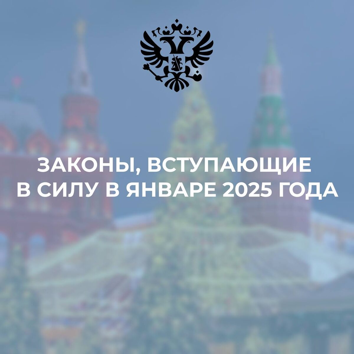 Подборка законов и правил, вступающих в силу в России в январе 2025 года.