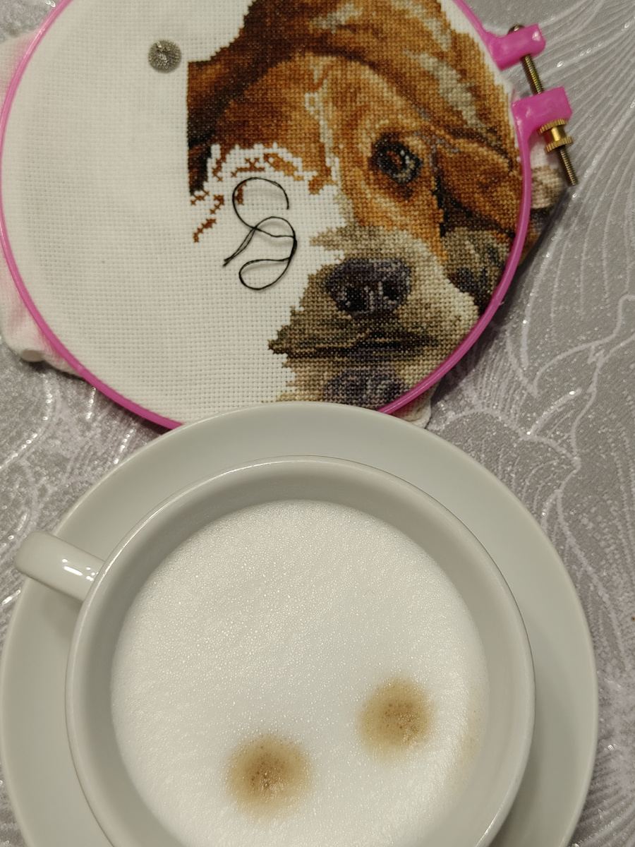 Во время уборки к Новому году, нашла потерянную схему ""Бассета. Думала, что вообще с концами потеряла, но нет, прибрала просто тщательно. Я уже даже думала купить еще один такой же набор, уж очень мне нравится эта собака. Надо теперь дошить не отвлекаясь на другие вышивки.