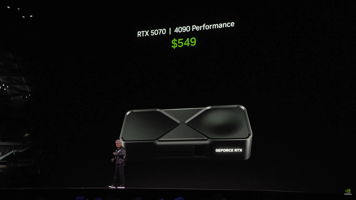 Глава Nvidia Дженсен Хуанг во время презентации линейки видеокарт RTX 50 заявил, что видеокарта GeForce RTX 5070 обеспечивает производительность уровня GeForce RTX 4090. Как это возможно, чтобы карточка за 550 долларов была равна флагману за 1600?