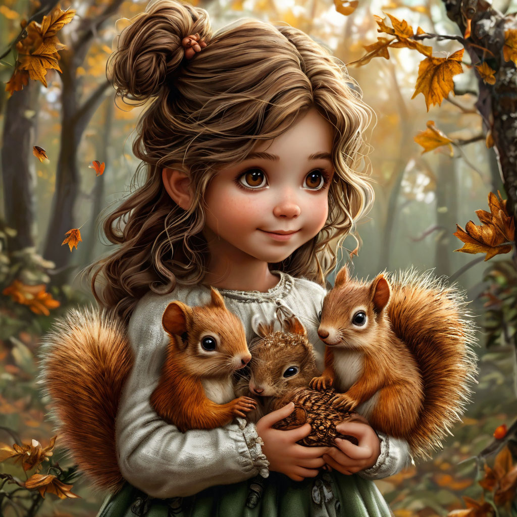 Собрав всю свою смелость, Катя рванула вперёд, не разбирая дороги. Волки ринулись следом, но белки ловко уводили их в сторону, создавая шум и хаос. Катя бежала так быстро, как только могла, перепрыгивая через корни деревьев и обходя колючие кусты. Внезапно перед ней открылась небольшая поляна, посреди которой возвышалось огромное дерево. Его ствол был настолько толстым, что девочка едва смогла обхватить его руками, а корни переплетались, образуя естественное укрытие.