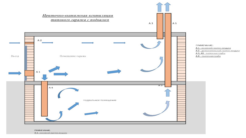Для притока воздуха в верхнем помещении гаража необходимо предусмотреть два типа отверстий: