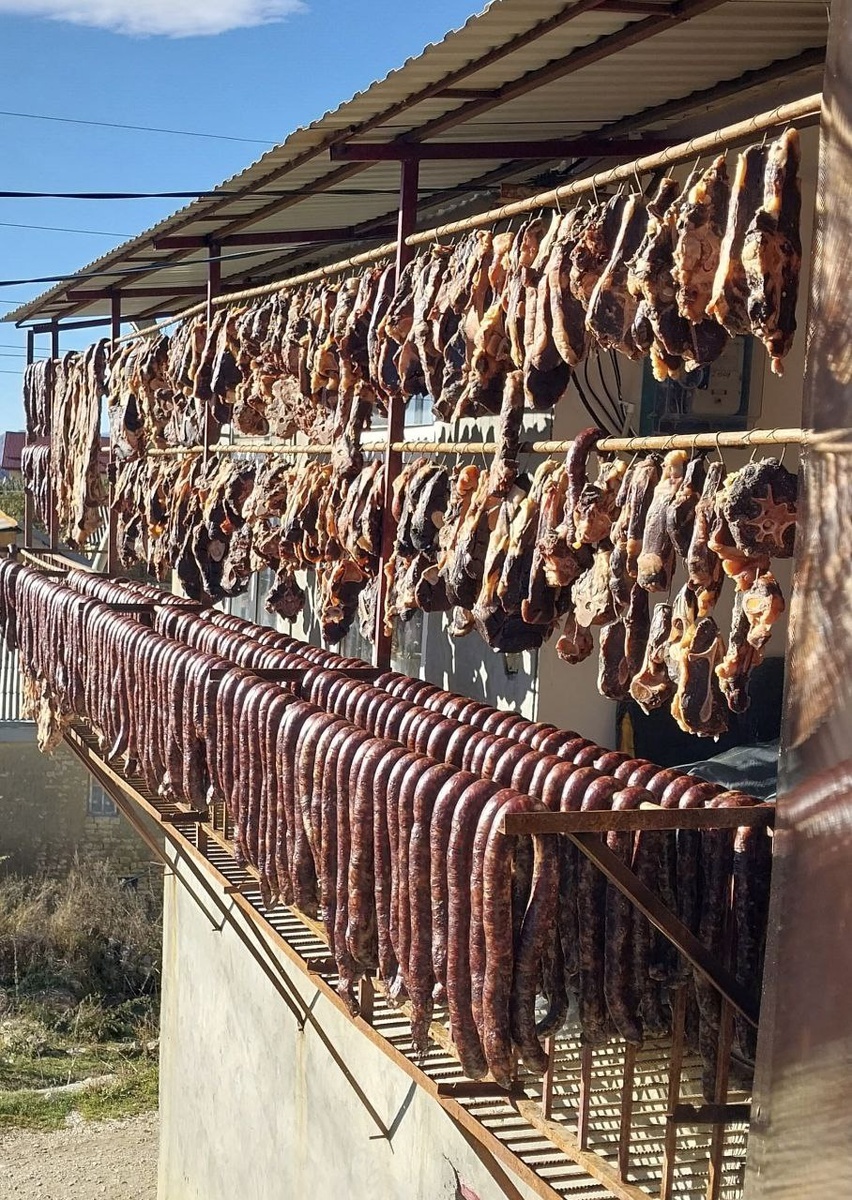 Самые длинные в году выходные – повод для того, чтобы ходить в гости и принимать гостей. А самое популярное блюдо на столах горцев — по прежнему хинкал и желательно с сушенным мясом или колбасой. Сушеное мясо в Дагестане — традиционный продукт, который употребляют с давних времен. Его готовят поздней осенью, когда стада возвращаются с летних пастбищ. Сушат говядину, баранину, козлятину, конину. Технология приготовления: — мясо разделывают на куски и оставляют на два дня в рассоле; — его хорошо моют, чтобы ушла соль; — мясо аккуратно развешивают. Сушеное мясо — превосходная закуска, напоминающая бастурму. Некоторые любят употреблять сушеное мясо или колбасу без термической обработки. Но в хинкал оно идет вареным. Если выбрать правильный кусок, мясо получается нежное, сочное и ароматное. Стоит попробовать один раз сушеное мясо, и даже гурман не откажет себе в радости заказать с ним и в следующий раз известное дагестанское блюдо.