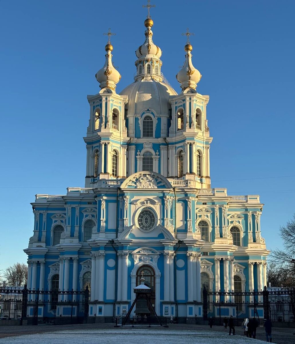 Смольный собор — один из самых ярких символов Санкт-Петербурга, воплощение элегантного барокко и настоящий архитектурный шедевр. Расположенный на берегу Невы, он привлекает внимание своей небесно-голубой цветовой гаммой, изящными белоснежными элементами и пятью куполами, устремлёнными к небу. История и архитектура Собор был построен по проекту знаменитого итальянского архитектора Бартоломео Растрелли в середине XVIII века. Он задумывался как часть монастырского комплекса для дочерей дворян и богатых купцов. Однако строительство растянулось почти на столетие. Завершение работ пришлось на XIX век, когда здание приобрело не только религиозное, но и общественное значение. Смольный собор сочетает в себе изящество и монументальность. Его фасад украшен пилястрами, лепниной и золочёными деталями, а интерьер поражает строгой гармонией линий. Смотровая площадка Одной из главных особенностей собора является возможность подняться на смотровую площадку, расположенную на высоте 50 метров. С неё откр