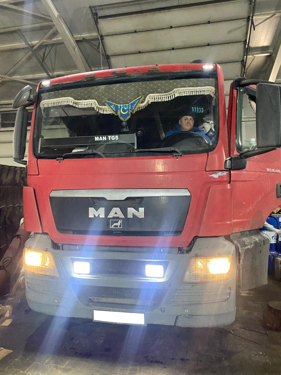 Мы установили систему, которая улучшает работу грузовика, находится за кабиной водителя и работает с давлением 190 бар. Система включает специальный бак, выдерживающий большие нагрузки, и насос, быстро перемещающий жидкость. Используемое масло от Газпромнефти также улучшает работу грузовика.