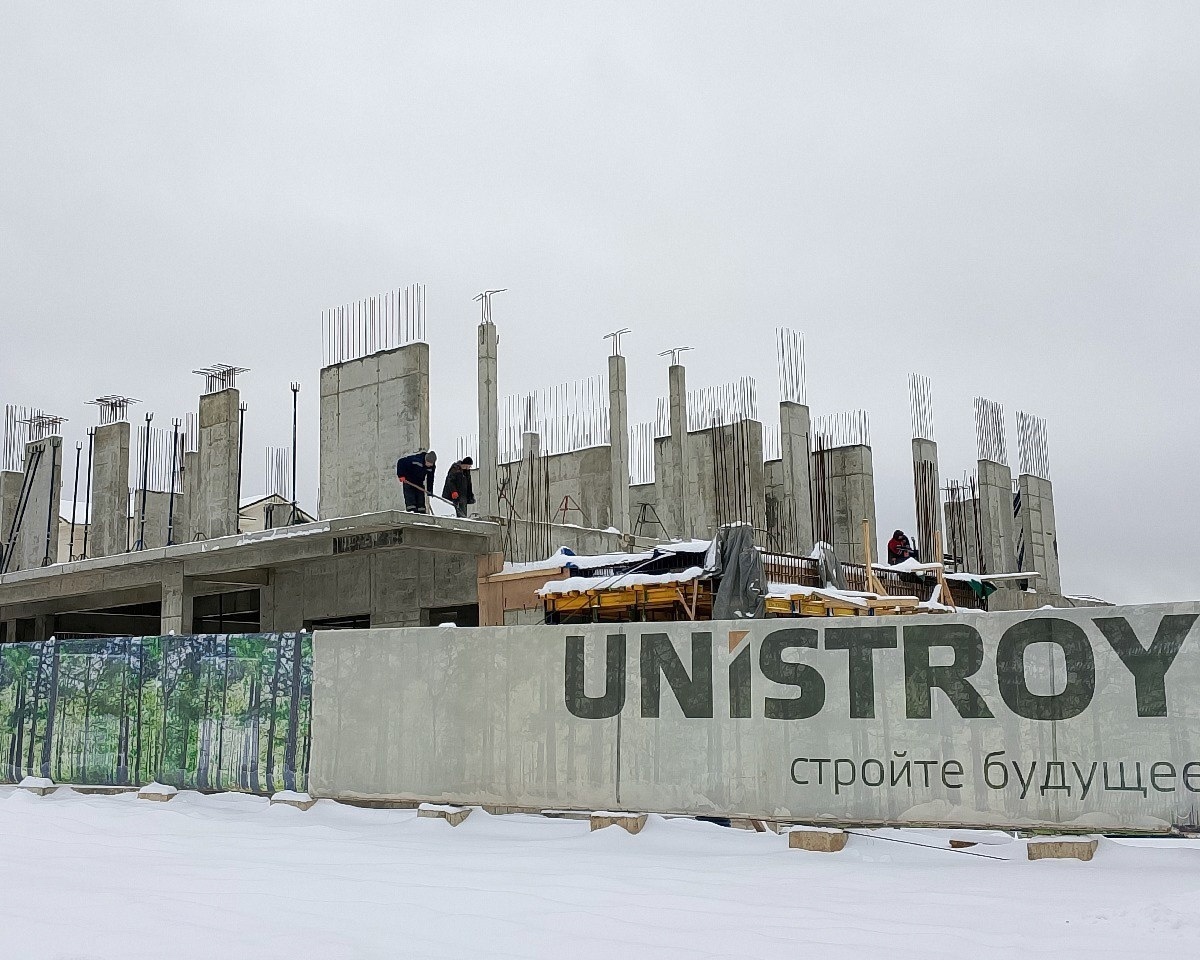 В декабре мы забетонировали стены и вертикальные конструкции второго этажа, а сейчас – продолжаем устройство монолитного перекрытия в разных осях. Для удобства используем ламинированную фанеру. Она позволяет возводить монолитные железобетонные конструкции любой формы и с минимальным количеством стыков. А еще у такой фанеры высокая прочность на изгиб, поэтому она не будет прогибаться под тяжестью свежезалитого бетона.