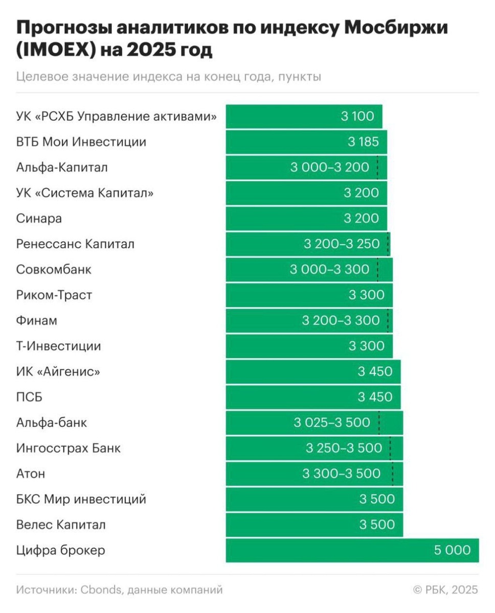 Прогнозы аналитиков по индексу Мосбиржи на 2025 год