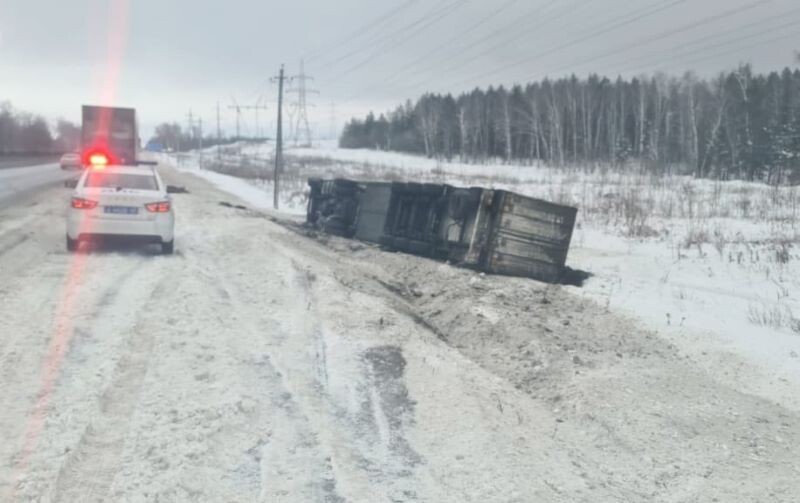 Фура с 25 тоннами бананов перевернулась на трассе М-5 в Самарской области