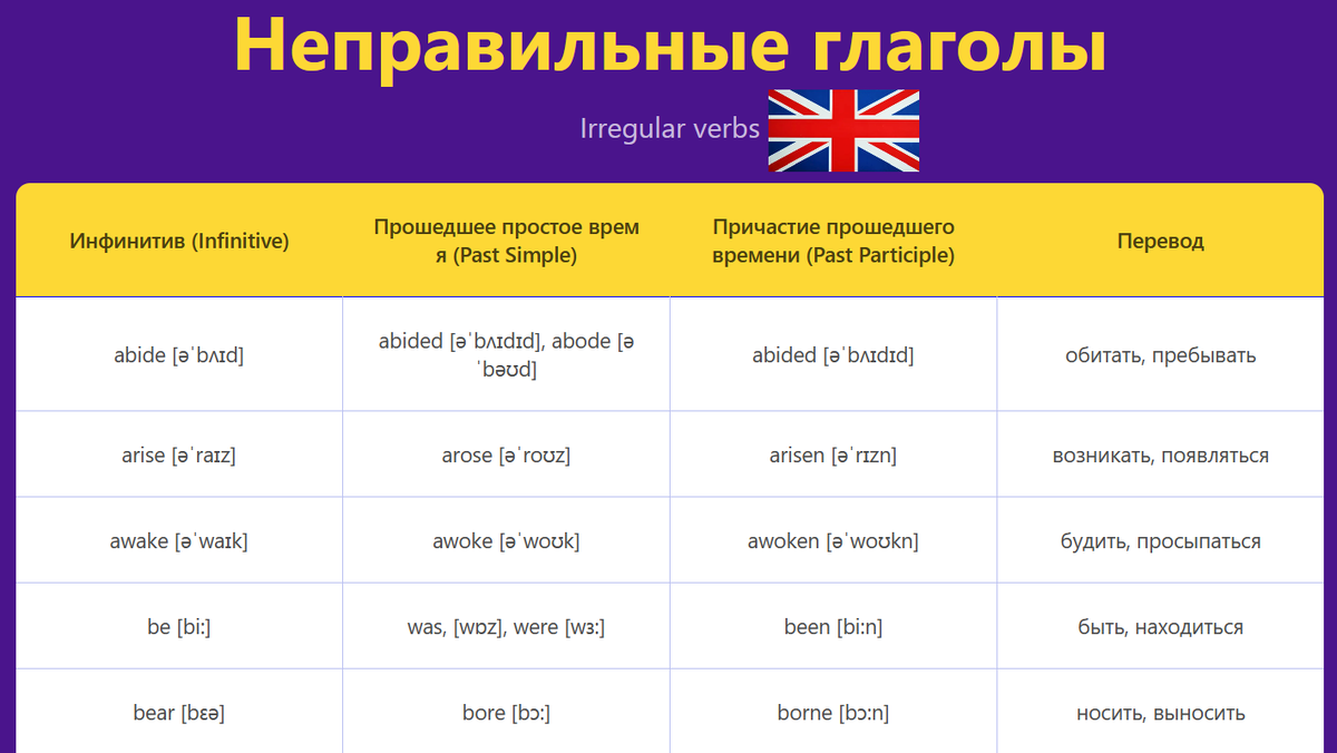 Факты о неправильных глаголах: Посмотреть таблицу неправильных глаголов можно ЗДЕСЬ 1. Неправильные глаголы – это исторический след древнеанглийского языка. Они сохранили свои формы из древнеанглийского, где изменения происходили не по современным правилам, а по внутренним закономерностям. 2. Их около 200, но в повседневной речи используется лишь 50-70. Самые популярные неправильные глаголы, такие как go-went-gone, have-had-had или be-was/were-been, встречаются постоянно. 3. Они разнообразны по формам. Некоторые глаголы имеют одинаковые формы во всех временах (cut-cut-cut), а другие полностью меняются (go-went-gone). 4. Количество неправильных глаголов сокращается. С течением времени многие глаголы становятся правильными. Например, раньше слово help было неправильным (holp-holpen). 5. Они помогают изучать фонетику. Изучение неправильных глаголов развивает понимание звуковых закономерностей, ведь многие из них имеют схожие окончания (sing-sang-sung, ring-rang-rung). 1. Краткость и