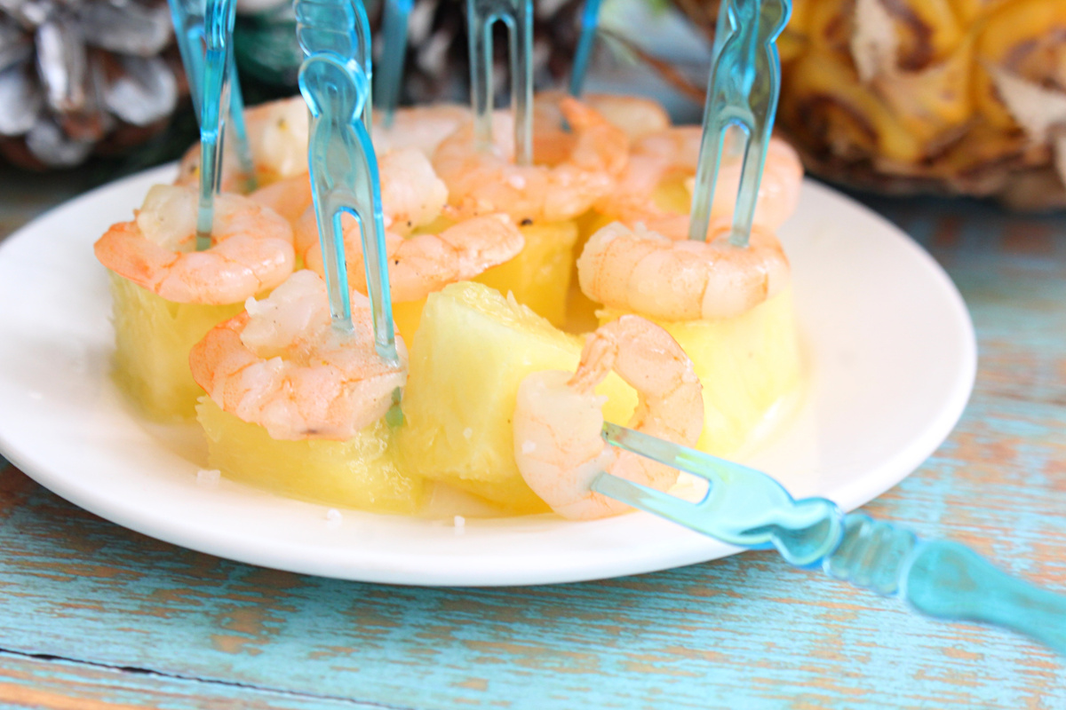 Эту закуску хорошо готовить когда мало времени или когда хочется отдохнуть от приготовления сложных блюд к праздничному столу. За 20 минут у вас будет готово вкусное и пикантное блюдо. Закуска сочная, легкая, аппетитная и необычная, она поднимет аппетит и настроение. Подавать эту закуску к столу надо сразу, пока креветки сочные. Ананас для приготовления подойдет как свежий, так и консервированный, а креветки нужны мелкие. Я использовала свежий ананас и кажется со свежим ананасом получается намного вкуснее. Ананас - 60 г. Креветки - 12 шт. Масло сливочное - 50 г. Лимонный сок - 1-2 ч.л. Свежемолотая смесь перцев - щепотка Соль морская - по вкусу Креветки выложим в чашку, зальем лимонным соком и добавим перец. Перемешиваем и оставляем креветки мариноваться на 10 минут. Сливочное масло выложим на сковороду растопим. От свежего ананаса отрежем круг толщиной около 2 см. Обжарим ананас по 2 минуты с каждой стороны и выложим на тарелку. Можно нарезать ананас тоньше, делайте по своему вкусу. С