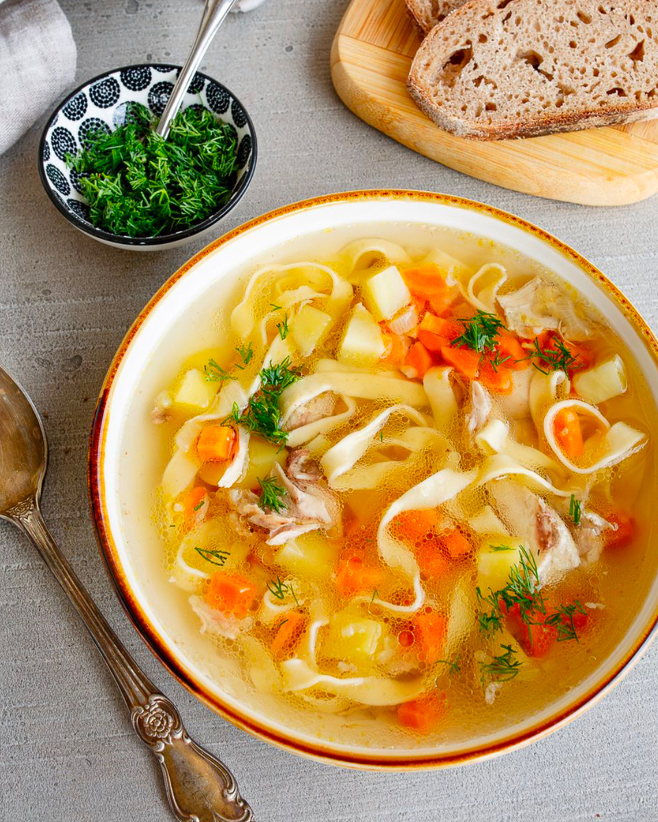 Для приготовления куриного супа, который вызовет у вас воспоминания о заботливых руках бабушки, вам понадобятся следующие ингредиенты: курица на кости — 500 г; картофель — 3-5 штук; лук — 1 штука; морковь — 1 штука; чеснок — 2-3 зубчика; мука — 4 столовые ложки; яйцо — 1 штука; зелень — по вкусу; соль — по вкусу; растительное масло — 3 столовые ложки; специи — по вкусу; вода — 2 литра; лавровый лист — 2 штуки; черный перец горошком — 5-7 штук; Этот суп — не просто еда, это настоящий ритуал, который соберет за столом всю семью. Аромат специй и свежей зелени перенесет вас в теплые воспоминания о детстве. Приятного аппетита!