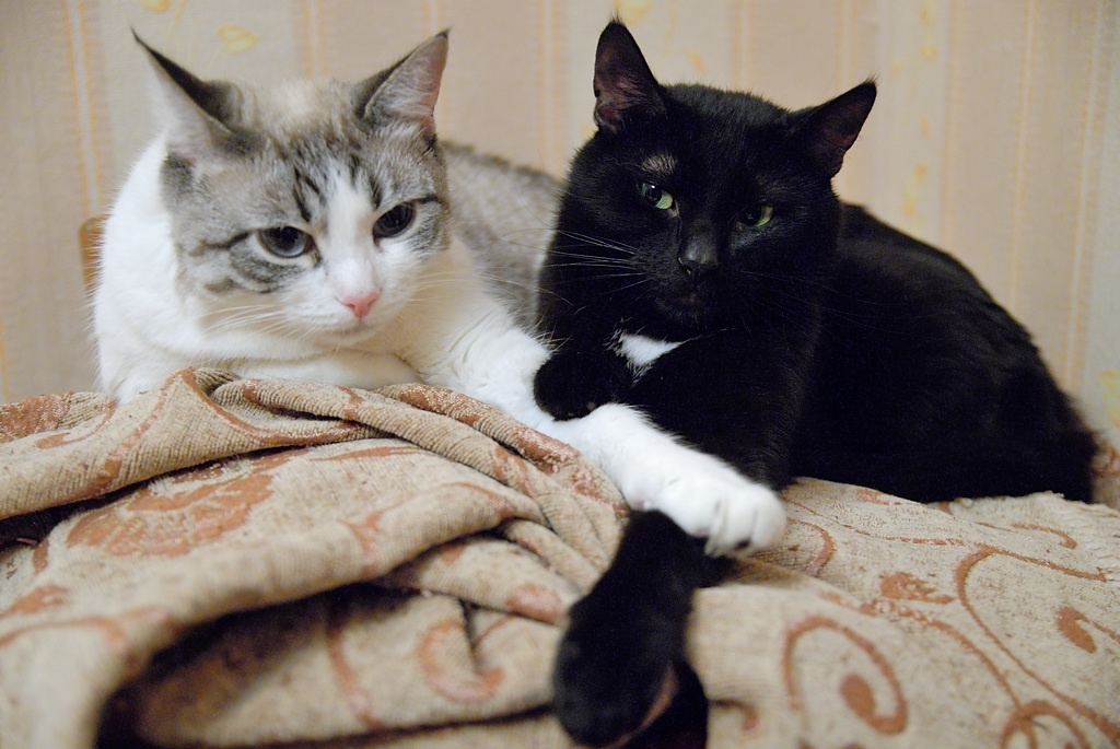 Шло время, я сломал руку. Жена в это-же время попала в больницу на сохранение. А у обоих котов отит. Два раза в день уколы в холку. Представляете что это было - одной рукой скрутить кота, зажать его ногами. И одной рукой со шприцем поставить укол. Я как-то справлялся. Однажды утром, часам к 11, меня разбудили легкие покусывания большого пальца ноги. Открываю глаза - рядом с головой сидит кошка и смотрит мне в глаза. А кот легонько покусывает палец. Кошка видит что глаза открылись, дает сигнал - и оба сверкая пятками, бегут на кухню. С воплем - "кормить пора". Вообще у них выстроилось интересное взаимодействие - с одной стороны кот доставал кошку своими притязаниями. С другой - когда у кота случился запор и его кормили вазелиновым маслом - кошка вылизывала коту испачканную грудь. Когда кошку случайно закрыли на балконе - кот царапался в балконную дверь и криком поддерживал пленную кошку.