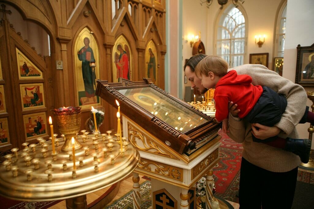 Но важнее этого сделать это до начала богослужения. Приходить за 10-15 минут до начала службы, так как считается неправильным расхаживать во время литургии или вечерней, покупать свечи, разговаривая с женщиной в церковной лавке, тем более подходить к подсвечникам в толпе. Во время начавшегося богослужения блуждать по храму, что делать перед Богом крайне не уважительно. После следует направиться к центральной иконе, выставленной посередине храма. Ее еще называют иконой праздника, так как в зависимости от Евангельского события или даты почитания святого угодника, ее меняют.