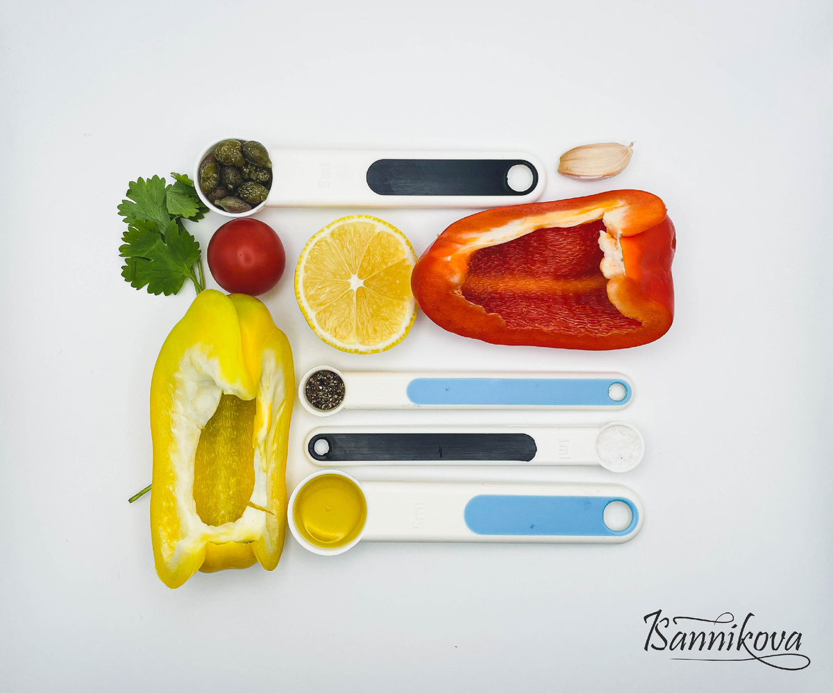 Рецепт пошагового приготовления салата "Мешуя" в домашних условиях с фотографиями Ссылка на рецепт: https://ksenia-sannikova.ru/salads/recipe489/ Ингредиенты: 1. в разогретой духовке до 200°С запечь перцы и помидоры, по времени и степени приготовления овощей ориентируйтесь на свою духовку, те данные, которые с пометкой ВАЖНЫЙ МОМЕНТ — это по параметрам моей духовки Важный момент: - помидоры запекать 5 - 10 минут; - перцы запекать 35 - 40 минут. 2. после того, как запечете овощи, необходимо убрать кожицу, перцы порезать соломкой, у томатов убрать мякоть и семечки, затем нарезать средним размером, каперсы и кинзу мелко порубить ножом 3. в чаше соединить подготовленные овощи, зелень, выдавить чеснок, добавить сок лимона, оливковое масло, посолить и поперчить 4. салат «Мешуя» готов На заметку: - перед подаче вы можете добавить еще мелко порубленной кинзы; - также полить красным винным уксусом.