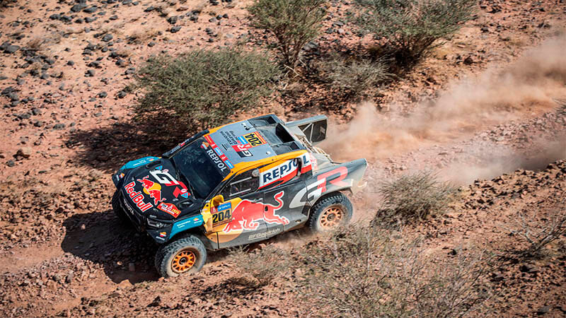 После неудачи в первой части марафонского этапа Нассер Аль-Аттия атаковал на пятом этапе и одержал первую победу дня для новой «Dacia Sandrider» — в общем зачёте Аль-Аттия сократил своё отставание до 25 минут.