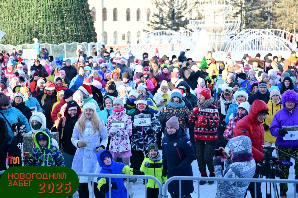В Томске 1 января прошёл восьмой новогодний забег. вот как его описывают организаторы Это зажигательный, праздничный, несоревновательный забег, для всех жителей и гостей Томска. Мы ждем участников любого возраста. Бежим ради удовольствия, ради встречи с друзьями и веселого, активного начала нового года! Форма одежды любая, от новогоднего костюма до шубы или купальника, от кроссовок до валенок! забег короткий, дистанция в метрах равна числу года. В этом - 2025 метров соответственно. Для меня это был третий забег. Не помню как узнала о нём, но впечатлений получила массу, поэтому и в прошлом и в этом году даже не думала, регистрировалась сразу. Тем более, регистрация на этот забег бесплатная. Мой номер был из пятой сотни, а всего зарегистрировалось больше 1000 человек. с погодой сказочно повезло. -16, без ветра и ясно. Замечательный первый день года! Перед стартом разминка и возможность рассмотреть участников :) многие в новогодних костюмах, собирались компаниями, организациями,