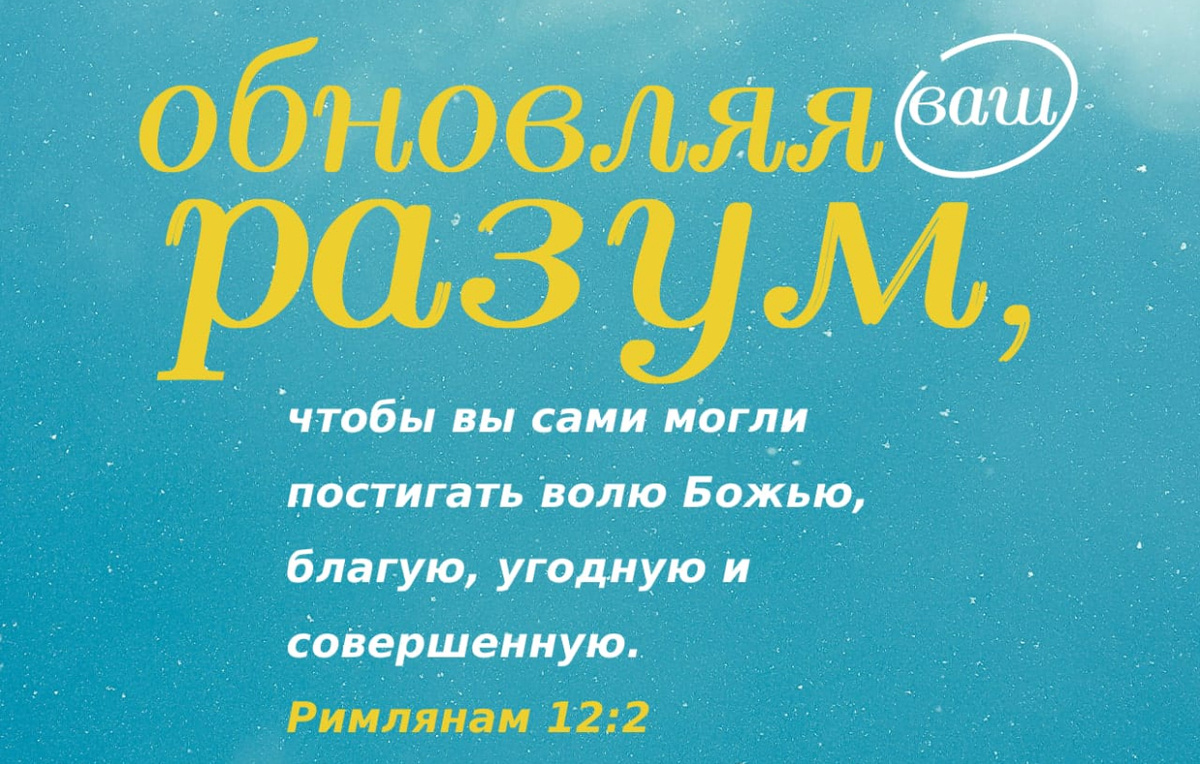 «Не сообразуйтесь с веком сим, но преобразуйтесь обновлением ума вашего, чтобы вам познавать, что́ воля Божия есть воля благая, угодная и совершенная»,