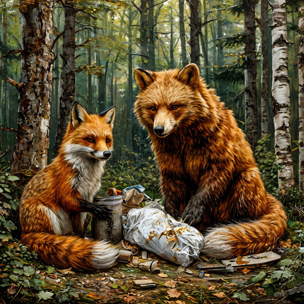 Все согласились, и на следующий день началась большая уборка. Волк, сильный и выносливый, таскал тяжёлые мешки с мусором. Лиса, хитрая и ловкая, помогала находить самые укромные уголки, куда попадали отходы. Зайцы прыгали по полям, собирая обёртки и пакеты. Белки лазили по деревьям, снимая с ветвей запутавшиеся полиэтиленовые ленты.