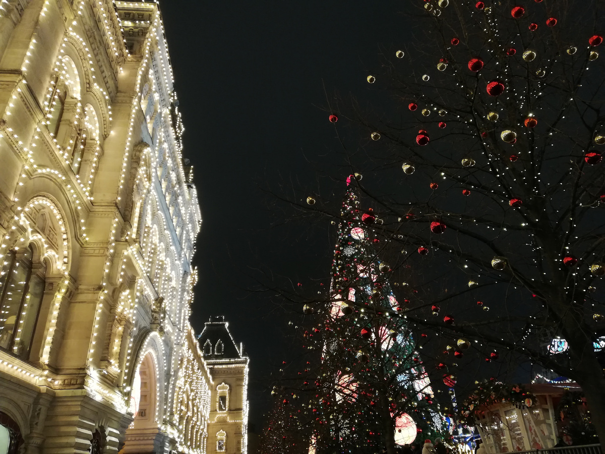 Заканчиваю свою фотогалерею главной елью ГУМа, высотой в три этажа, которую устанавливают на месте фонтана. И вокруг которой разворачивается продажа елочных игрушек и новогодних атрибутов.