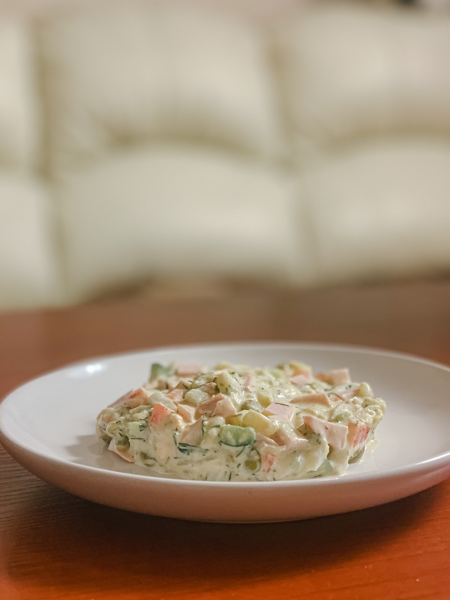 Проживаю 2 января в радости и спокойствии. доедаем новогодний салат и наслаждаемся тишиной. Фейерверки закончились, снег тоже. Настроение — безмятежность. Делюсь секретами своего вкуснейшего оливье. (по мнению гостей и, конечно, мужа) кроме традиционного набора ингредиентов я добавляю в этот салат к соленым огурцам парочку свежих. Из зелени только укроп. Щедро и мелко нарезанный. И очень тонко-тонко режу репчатый лук маленькими кубиками. Горошек всегда обдаю кипятком. Заправляю строго перед подачей обычным Провансалем. Делюсь и моими идеальными пропорциями: Картофель — 6 клубней. Яйца — 6 шт СО Морковь — 2 шт среднего размера Репчатый лук — 1 шт Горошек — 1 банка Огурцы соленые — 2-3 шт Огурцы свежие — 2 шт Грудка куриная — 1-2 шт или вареная колбаса, но лучше без колбасы. Курицу варите с добавлением кореньев, перцев и лаврового листа. Бульон заморозьте. Пригодится для овощных супов или других блюд. Майонез, зелень, соль и молотый перец по вкусу и уже перед подачей.