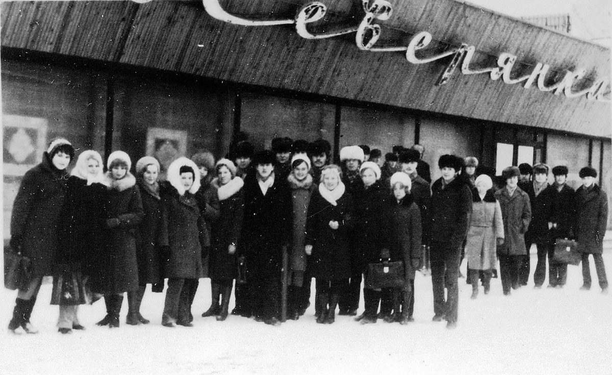Снимок на фоне кафе «Северянка» на улице Калинина в середине 1970-х. Сейчас это улица Зосимовская и здесь располагается кафе «Гудок». А вот что писали про «Северянку» в 1972 году спустя некоторое время после открытия кафе.