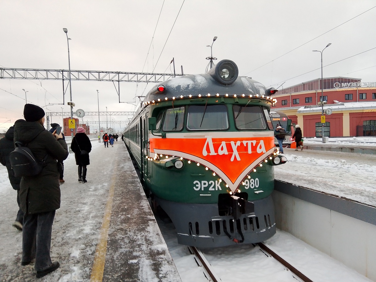 Описание первого похода в наступившем году. Поездка на ретропоезде "Лахта" в Гатчину. Дневная прогулка по Приоратскому парку в ожидании автобуса. Поездка в Жабино. Осмотр остатков усадьбы герцога Мекленбургского-Стрелицкого. Посещение церкви Ксении Петербургской. Возвращение в Гатчину и прогулка по вечернему городу. (Заметки в формате "краткий отчет после возвращения из похода" я буду писать каждые выходные, с сегодняшнего дня и далее. В основном они для тех, кто меня знает, и кто регулярно следит за деятельностью моего турклуба). С Балтийского вокзала едем на ретро-электричке Эр2к-980 "Лахта". В этот день она идет до станции Гатчина-Балтийская. Внутри нарядно, уютно и тепло Выйдя в Гатчине Балтийской, сели на автобус, чтоб доехать до другой станции - Гатчины Варшавской. Там в 13.25 отправляется автобус в деревню Жабино. У нас был целый час. Из него мы выделили 40 минут на прогулку по Приоратскому парку. Стоял красивый зимний день. В парке увидели много новых скульптур. Вот баба Яга