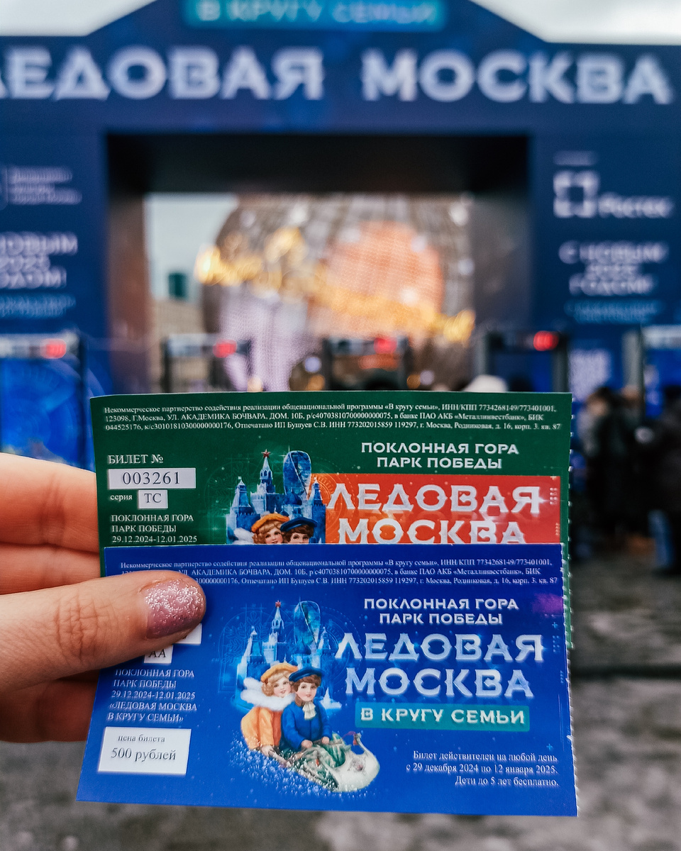 "Новогодний фестиваль «Ледовая Москва. В кругу семьи» возвращается в Парк Победы на Поклонной горе! Это единственное мероприятие в России подобного уровня, рассчитанное на семейный и детский досуг в зимнее время.Попадая на площадку фестиваля, гости окунутся в атмосферу ледовой сказки". Эта реклама буквально кричала на меня с экрана ноутбука с конца декабря, и я сдалась. Вход на Ледовый фестиваль платный и приобрести билеты можно ТОЛЬКО непосредственно в кассах возле станции метро "Парк победы". Касс этих не менее десятка, поэтому очередей нет, по крайней паре в дневные часы. Взрослый билет стоит 700 рублей, детский от 5 лет - 500 рублей. Что же дает нам этот билет? "Изо льда необыкновенно аллегорично будут созданы образы самых востребованных инженерных профессий. А также множество интерактивных ледовых скульптур для незабываемых фото". Не знаю, что имеется ввиду под интерактивными скульптурами, я такие не обнаружила, хотя, вроде бы, обошла всю территорию. Всего же скульптур...от