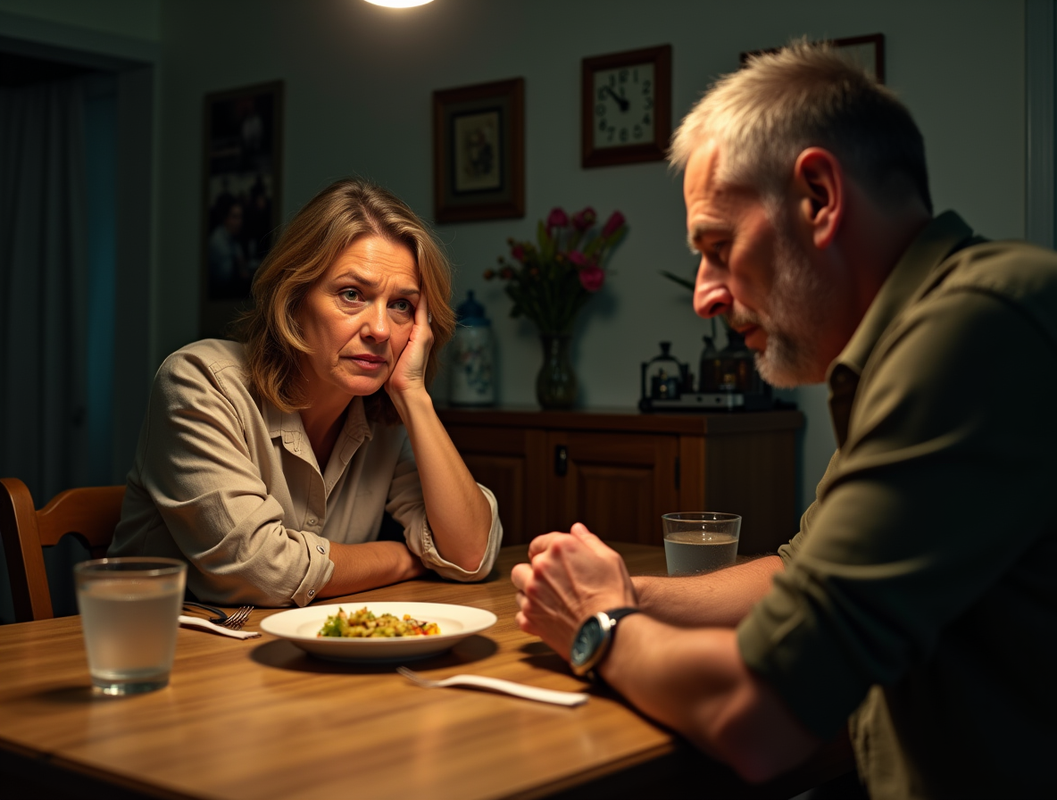 За окном догорал закат, раскрашивая небо в оттенки розового и золотого. Где-то вдалеке лаяла собака, слышался детский смех с детской площадки – та самая, где когда-то играл их сын, а теперь бегали чужие дети. Обычные звуки вечера, создающие полотно их жизни.