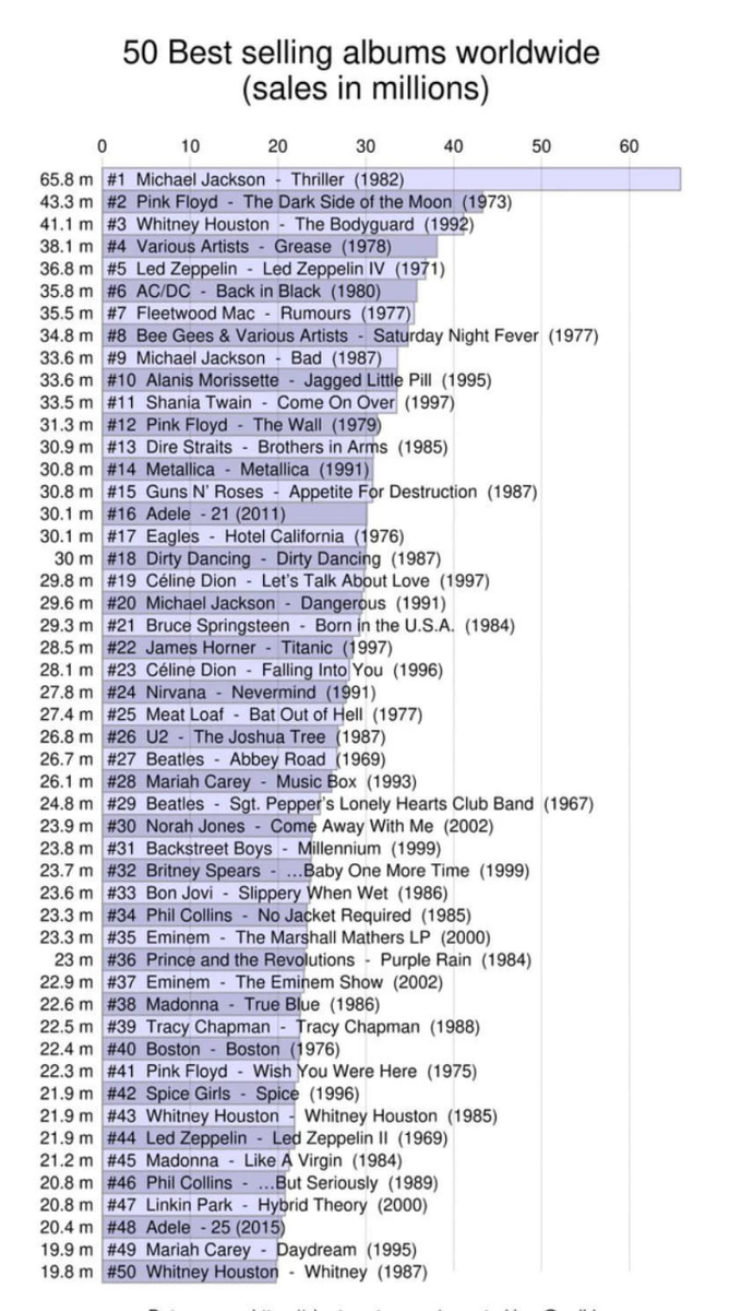 50 самых продаваемых музыкальных альбомов за все время. Abbey road моих любимых Битлов только на 27 месте. А Майкл Джексон, который был на подтанцовке у Пола Маккартни - на первом ПРИГЛАШАЮ ОТСЛЕЖИВАТЬ НАС В ТЕЛЕГРАМ