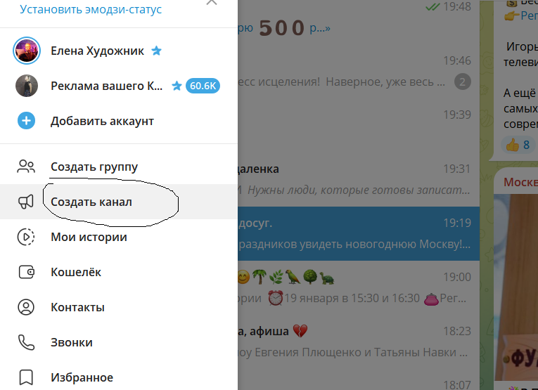 Как обещала, показываю на скрин шотах, как создать канал в телеграмм для заработка на рекламе. О том, что у меня три канала и я зарабатываю не на целевой рекламе, а на рекламе с розыгрышами за подписку и о том, чем эти два варианта отличаются, я рассказывала вот в этой большой статье Огромное и важное преимущество ТГ в качестве инструмента заработка на рекламе - в его простоте. Функционал примитивен, разобраться можно быстро и просто. При этом, на старте даже не обязательно покупать ТГ премиум (он все-таки в дальнейшем потребуется просто потому, что подписка дает удобный функционал для упрощения работы и экономии времени). Итак, я покажу на примере мобильного приложения ТГ. В дектопной версии все то же самое, кроме первого шага - "создать канал". Если вы работаете с компа, это будет выглядеть вот так. Нажимаете на три полоски в верхнем левом углу дектопной версии и открывается опционал. Вам нужно нажать "создать канал". Именно канал, а не группу. В приложении чуть отличается интерф