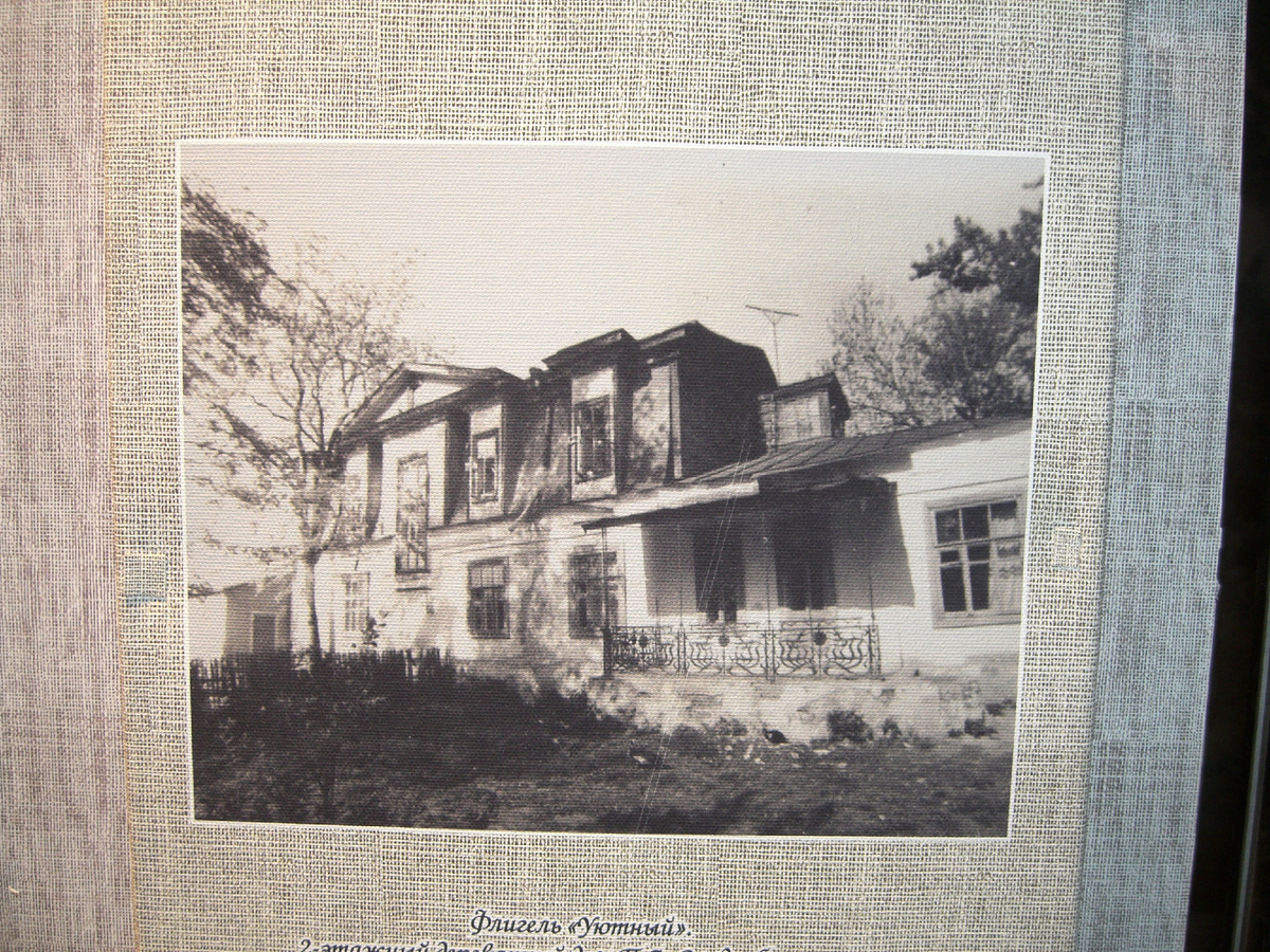 Здесь, за пределами замка, находится флигель «Уютный», который был построен для молодожёнов – Петра (сына Евгении и Александра) и Ольги. Ольге он не понравился, поэтому для них было приобретено поместье у помещицы Чарыковой, названное позже Ольгиным. После революции флигель использовался как жилой дом. Его мало кто знает, я узнала и увидела его лишь в нынешнем, 2024 г. Сейчас он почти заброшен, однако в окне на первом этаже видны вполне свежие шторки, но вокруг дома – высокая трава и старые яблони… Будет жаль, если это оригинальное здание будет утрачено.