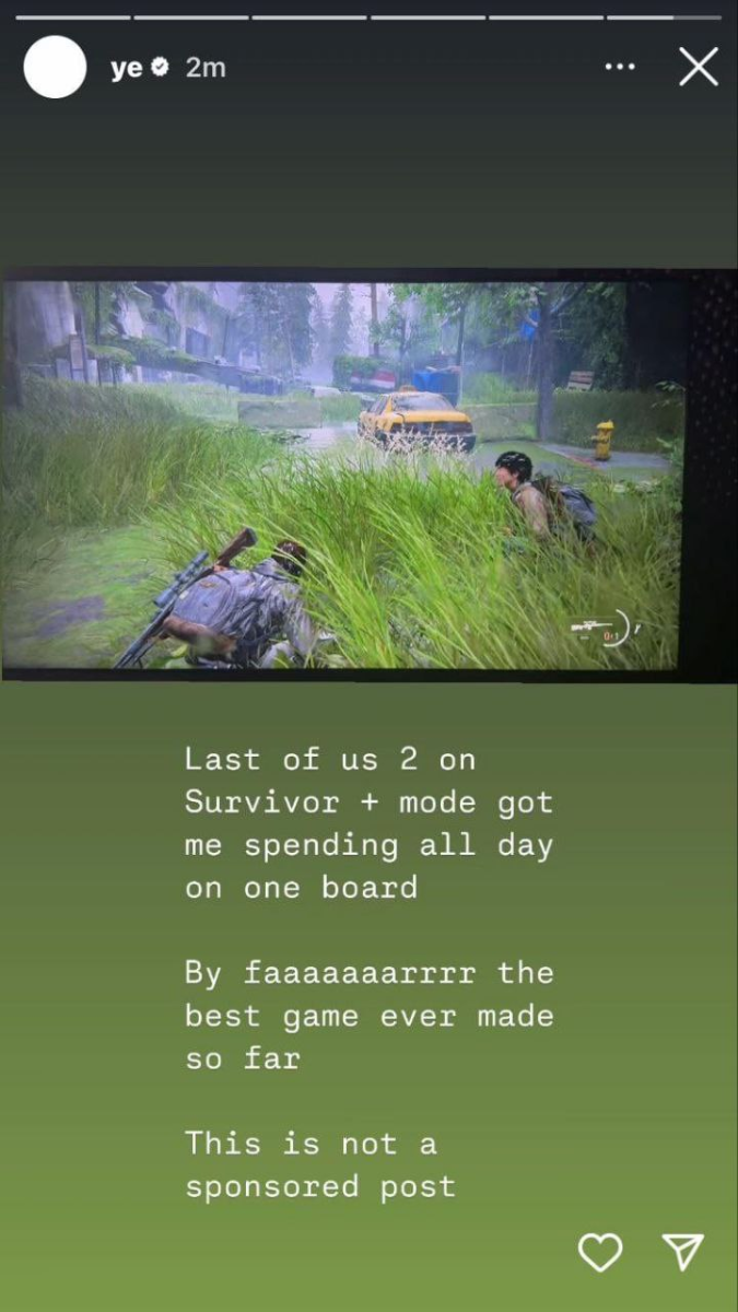 Канье Уэст назвал The Last of Us Part II лучшей игрой всех времён