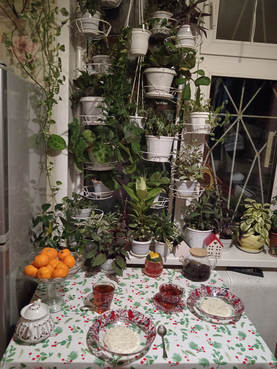 Тут и супруг подошёл. Ваську и Муську накормил. Снег у дома вычистил. С шести утра на ногах.
