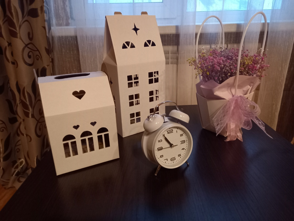 Даже комнату не поленилась, к праздникам немного украсила, снежинками и домиками из картона.