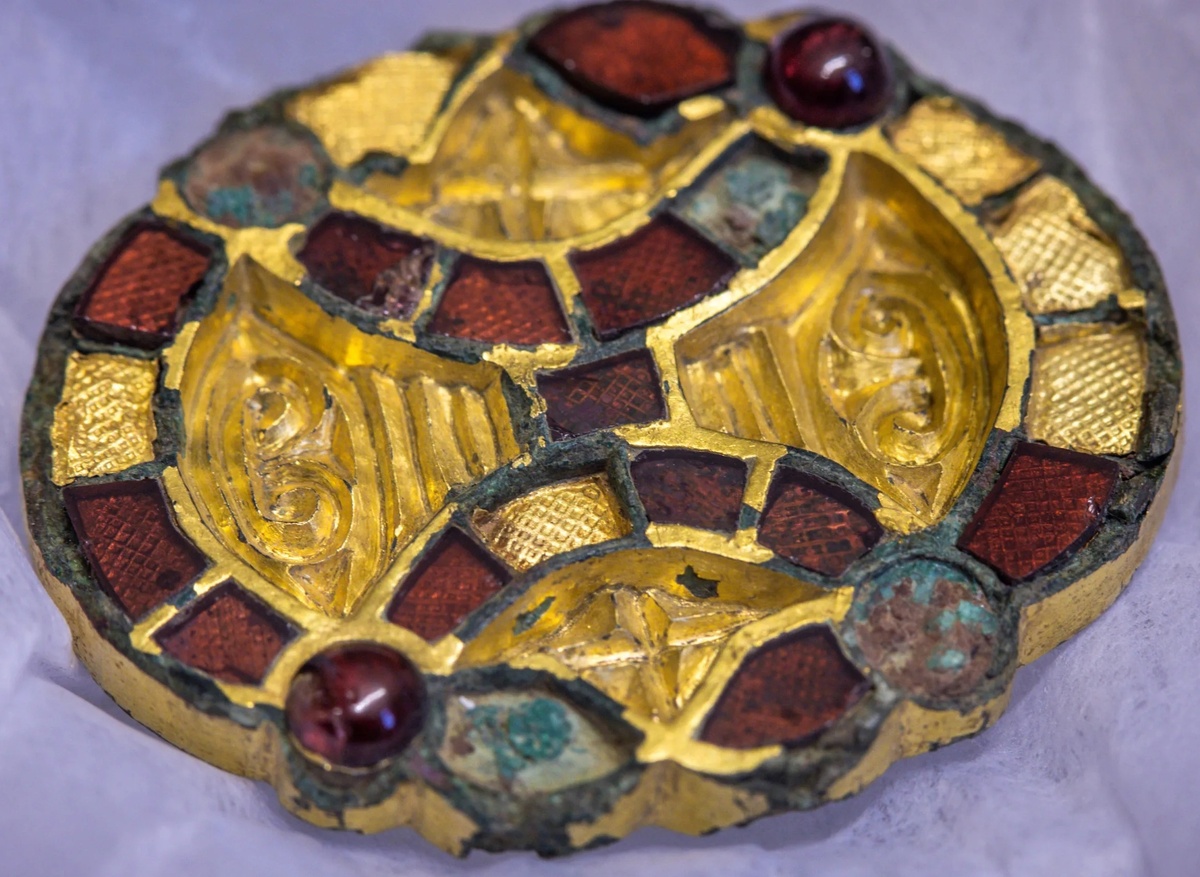 Это одна из самых ценных находок 2024 года. Позолоченная брошь раннего Средневековья, инкрустированная гранатами