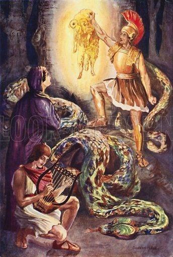 "Милый, не время сейчас для предъявы, Ночь быстротечна, уж скоро заря. Папа жесток мой и очень лукавый, Чтоб всё устроить, ты слушай меня!" Больше она не промолвила слова, Ей поцелуй запечатал уста. За руку, словно ребёнка мало'го, Дева его за собой повлекла... Ночь разливала чернила над лесом, Дул ветерок, вызывая озноб. Вот показалася роща Ареса, Тьму разогнал вдруг лучей яркий сноп. Вот и руно на раскидистом древе, Ярко сияет как тыща корон. И изрыгающий пламя, весь в гневе Злобный охранник Ээта - дракон! Зелье снотворное было сподручно, Быстро плеснула в драконовый нос. Сразу уснув, он свалился беззвучно, Дело закончил товарищ Гипнос. После же, хоть и с трудом с непривычки, С дуба священного сняли с цепей, С помощью взятой заранье отмычки, Свой золотой драгоценный трофей... Продолжение следует...