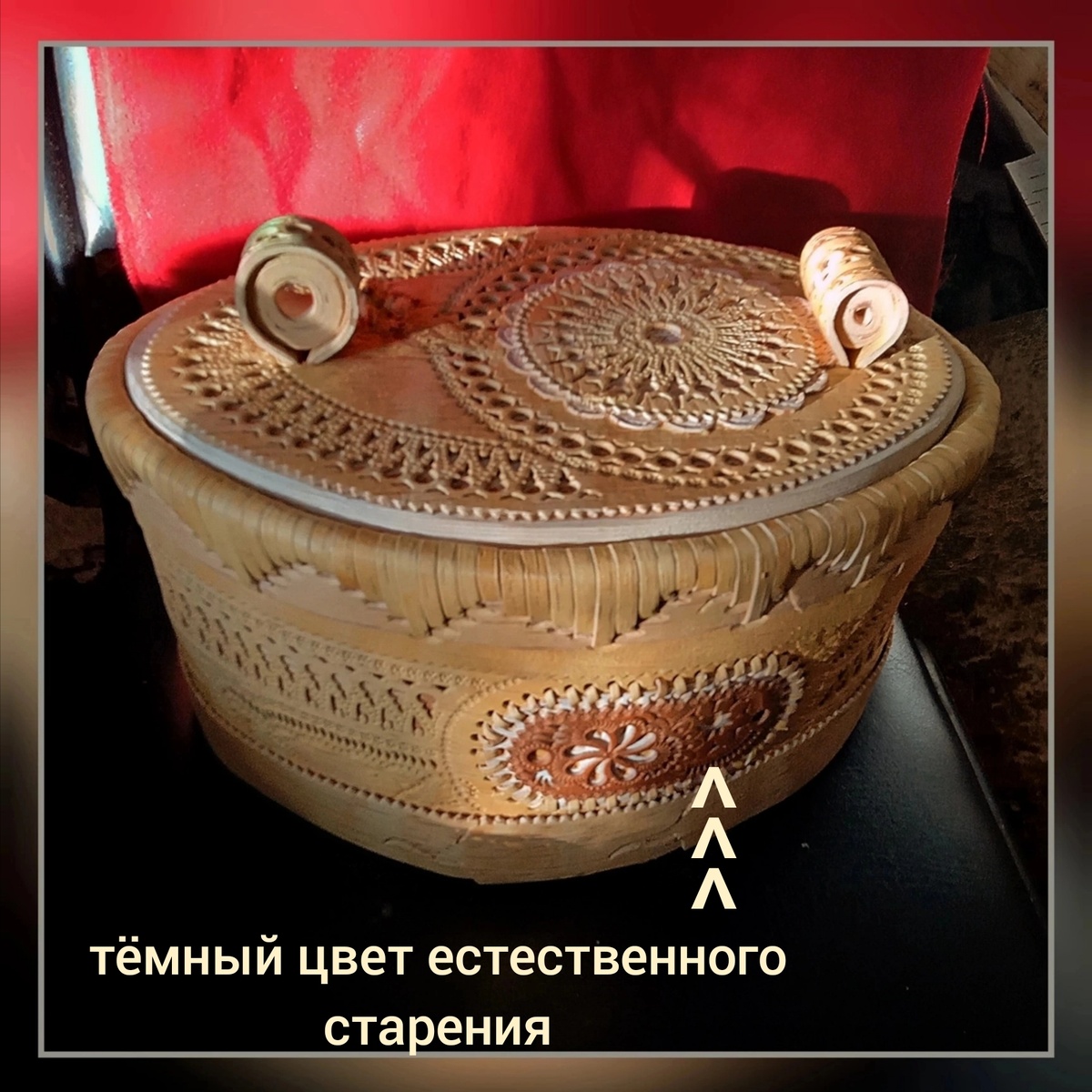 Длинные проекты в ремесле – это преимущество перед коллегами. Раньше вот гончар работал из глины, которую заготовил его отец. Понятно, что за долгие годы она вылежалась и выщелочилась, и всё прочее с ней произошло. А сам он уже заготавливал материал для своего сына. Для нас такой "горизонт планирования" не доступен, увы, но всё же, у меня вот моей мастерской уже более четверти века и есть от этого свои плюшки. В частности вот берестяные нашивки на моих туесах ничем не крашены, они потемнели за счёт естественного старения, поскольку вырезаны мною в прошлом веке, в 1999 году как минимум. Часть этих нашивок затевалась в своё время как резные панельки заколок для волос. В девяностые я их изготовил какое-то сумасшедшее количество, и некоторые прям до сих пор живы. Процесс имел сезонность, близкую к катастрофической – летом они разлетались как горячие пирожки, зимой же я эти элементы вырезал в запас, поскольку в это время спрос был минимальный, а летом как ни старайся – не успе