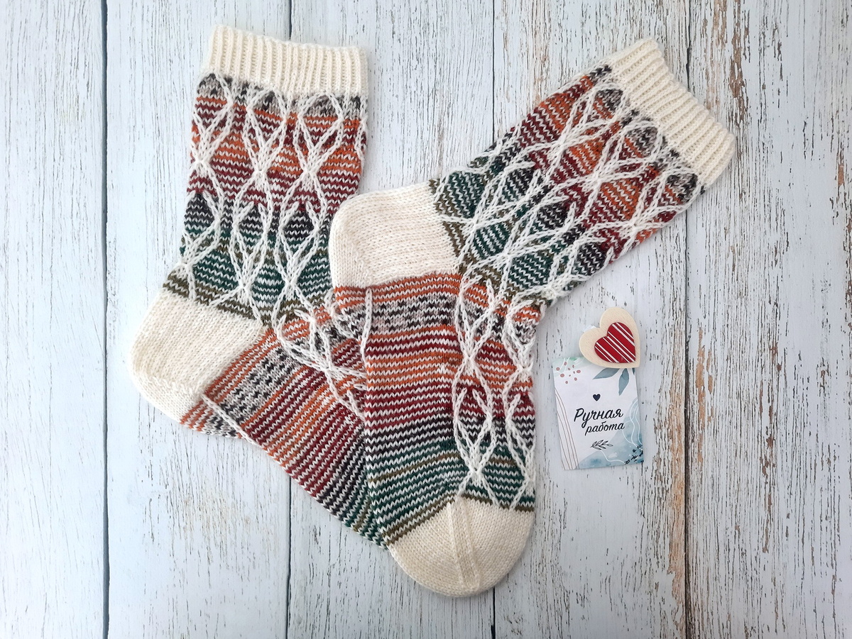 Вязание этих ярких носочков стало для меня интересным экспериментом с методом «хеликс» и узором из вытянутых петель контрастного цвета, и я с удовольствием делюсь с вами подробным описанием.