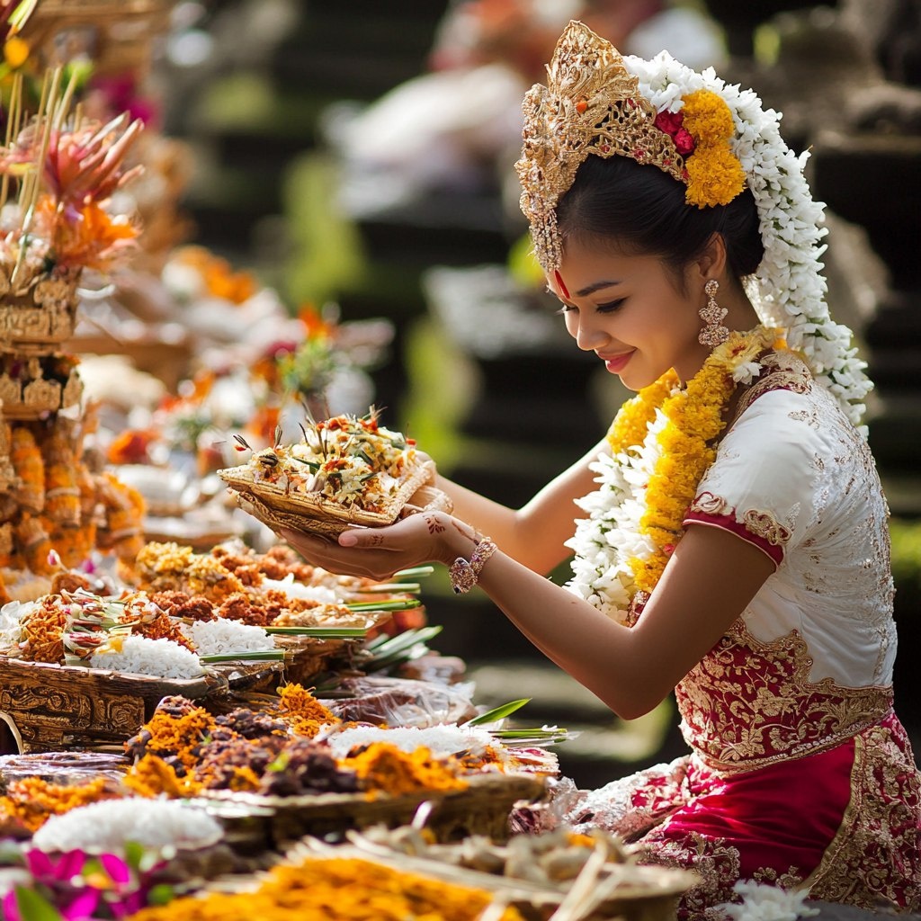 Каждый день на Бали проходят ритуалы благодарности и благословения. В каждом доме есть храм, где балийцы подносят угощения высшим силам. Эти маленькие жертвы — символ уважения и признательности, что создает атмосферу любви и заботы. Вы увидите, как местные жители с улыбкой и радостью выполняют свои обряды, и это ощущение искренности передается каждому, кто оказывается на острове.