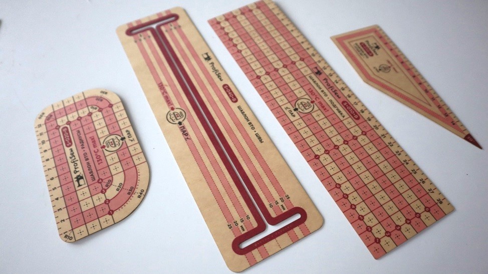 Шитьё – это не просто процесс соединения ткани нитками, а настоящее искусство, в котором каждая швея играет роль художника и мастера. И как у любого мастера, у швеи есть свои уникальные инструменты и приспособления, которые помогают ей создавать качественные и красивые изделия. Основные инструменты, такие как иглы, нитки, ножницы и швейная машинка, есть у каждой швеи. Однако, у каждой есть свои предпочтения. Например, одни швеи пользуются портновскими мелками для разметки ткани, а другие – водорастворимыми маркерами. Некоторые не представляют свою работу без линейки-треугольника, а другие уверенно работают с сантиметровой лентой. Так, мне всегда помогали самодельные шаблоны из картона, с помощью которых я точно подгибала ткань на 1, 1,5, 2, 3 см. Но картон быстро изнашивается. Поэтому купила себе готовые шаблоны для влажно-тепловой обработки. Они изготовлены из прочного картона с термостойким покрытием, которое выдерживает температуру до 150 градусов. В комплекте 4 штуки. Шаблон для ра