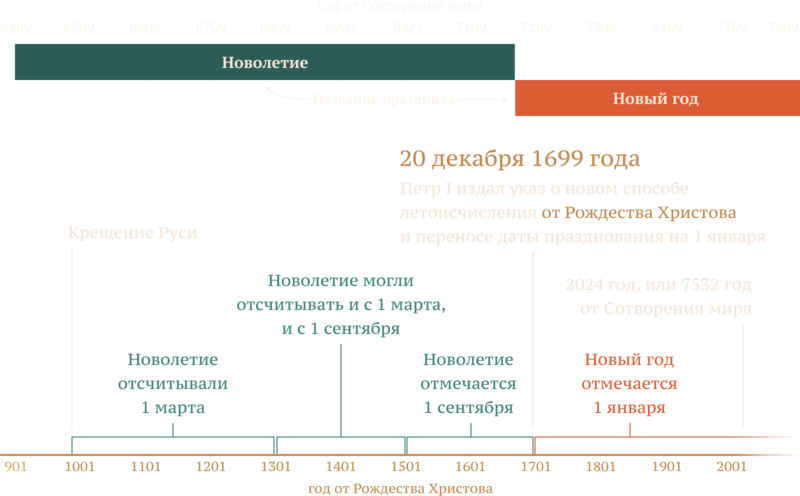 В соответствии с указом, изданным Петром I 20 декабря 1699 года, в России был введён новый календарь, основанный на юлианском. Это означало, что теперь новый год начинался с 1 января, а не с 1 сентября, как было принято ранее.