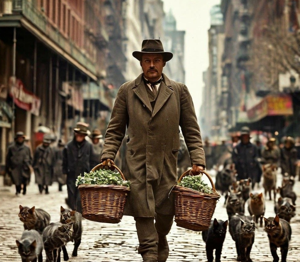 В 1909 году нью-йоркский бизнесмен Герман Готтлиб находился в поисках способа быстро заработать. Его поиски привели в лес Северного Манхэттена, где он обнаружил заросли дикой кошачьей мяты. Собрав две корзины этого ароматного растения, Готтлиб отправился в центр города, чтобы продать свой товар владельцам кошек. Но он даже не догадывался, что в этом районе обитает множество бездомных кошек, которые постоянно голодные. Когда он шёл по улице, несколько бездомных кошек, несмотря на его осторожность, всё же смогли стащить несколько листьев из его корзины. Аромат мяты одурманил их, и они начали извиваться и кататься по земле. Вскоре к ним присоединились ещё несколько кошек, которые «запрыгивали на его корзины, тёрлись о его ноги, мяукали и мурлыкали». Готтлиб попытался отогнать кошек, но те, словно обезумев, не желали уходить.Породистые и беспородные, домашние и дворовые, сбегались со всех углов, из подвалов и подворотен, стремясь к двум корзинам с кошачьей мятой. Вскоре Готтлиб понял, ч