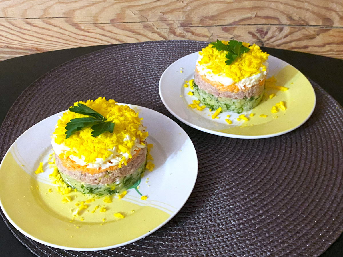Потом муж предложил приготовить с печенью мимозу, преобразовав её