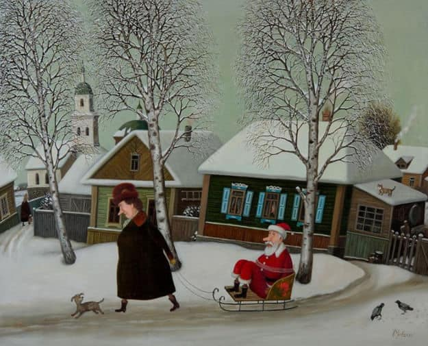 Дед Мороз оказался довольно упитанным. Маня с трудом помогла ему выбраться из-под кустов и усадила на санки.