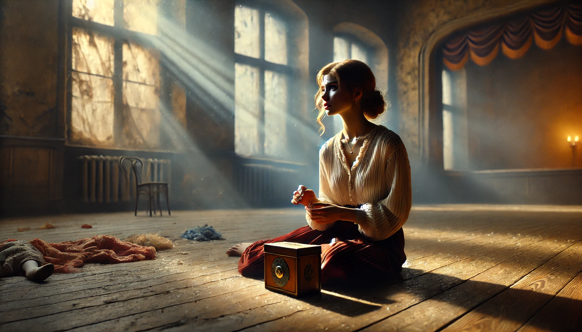 После репетиции Вера осталась в пустом зале, слушая, как её шаги эхом отдаются в стенах. Ей вспомнился тот миг, когда она сама стояла на подобной сцене, принимала цветы и аплодисменты. Тогда у неё было всё: слава юной балерины, перспективы… И внезапно травма, после которой пришлось уйти, оставив мечты и обжигающие софиты за спиной.